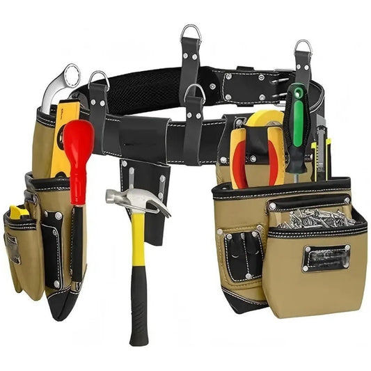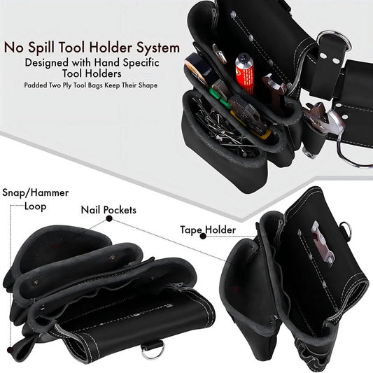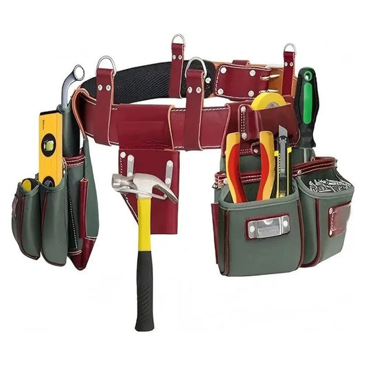 Large Capacity Electrician and Carpenters Genuine Leather Tool Holder Pouch Multi Pockets Mechanics Tool Bags