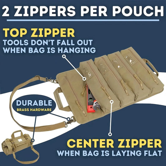 Small Tool Bag with Detachable Pouches Heavy Duty Roll Up Tool Bag Organizer with 6 Tool Pouches