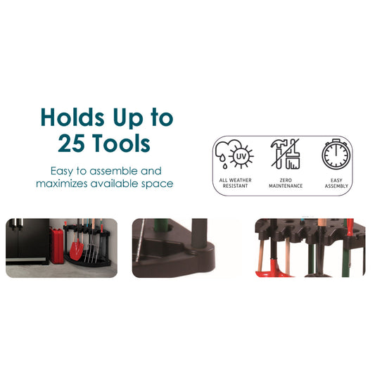 Compact Durable Resin Garage and Shed Corner Tool Rack and Organizer