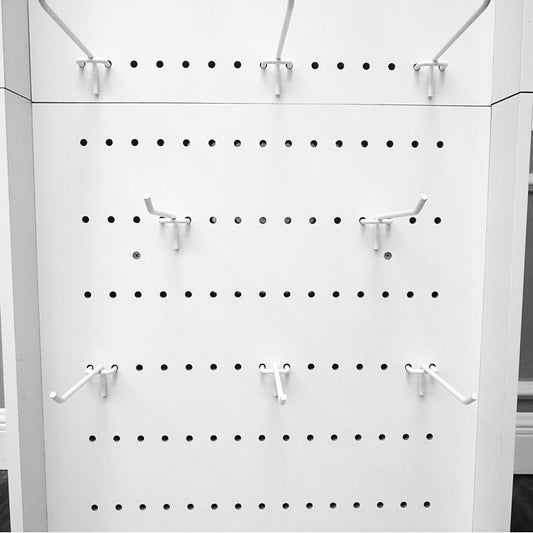 Two-Sided Pegboard Floor Display on Revolving Base. Spinner Rack Stand. Panel Size: 13.5''W x 60''H